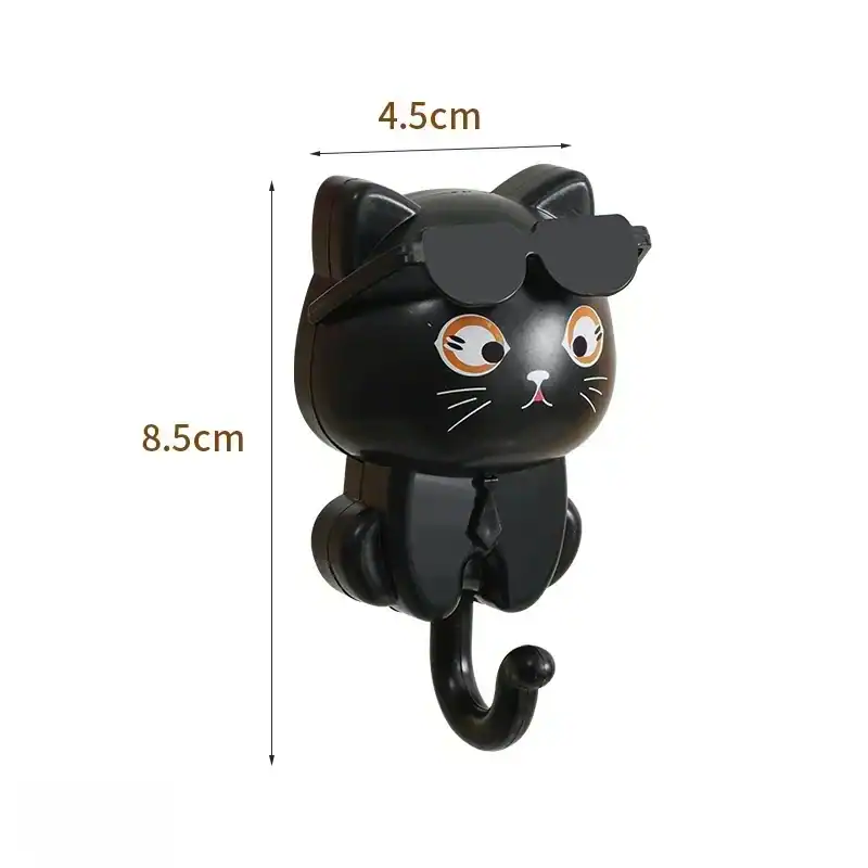 Cartoon Cat Sunglasses Hook – Strong Adhesive, No-Drill Wall Storage for Home, Kitchen & Bathroom
