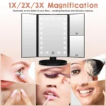 The mirror features 3 panels with 1X, 2X, and 3X magnification, providing a wide-angle viewing for clear facial features.